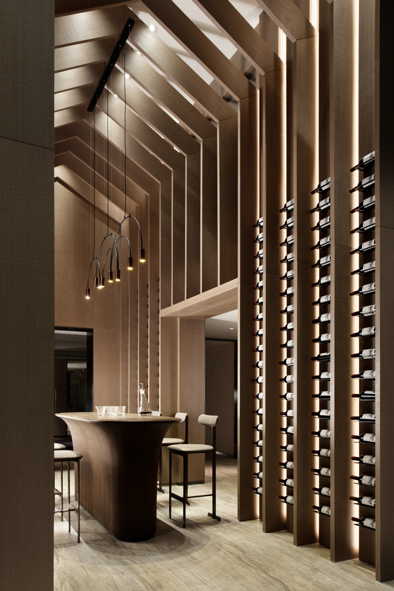 通過成規模的空間造型,原木的顏色與質感質感顯露出不一樣的內斂與優雅,從功能出發,賦予空間舒適的感受。