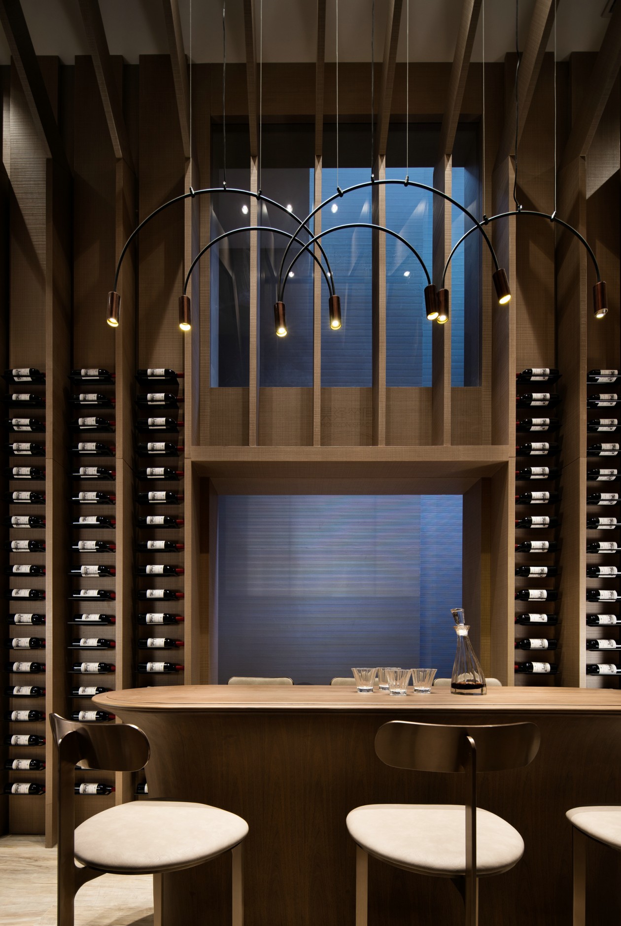餐廳吊燈流線型線條,純粹的空間結構和在細節上的考究,是設計師對Aston Martin的精髓領會。