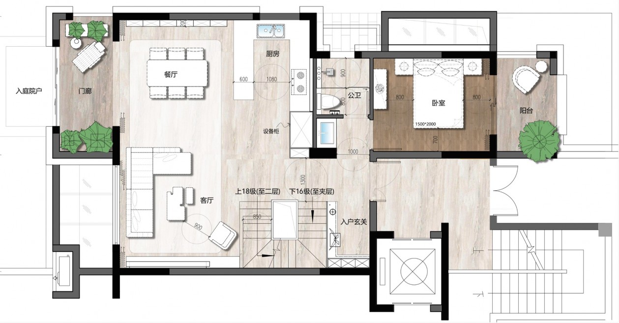 相鄰的陽臺給予適當的休憩放松,或遠眺室外風景,或放空自我。